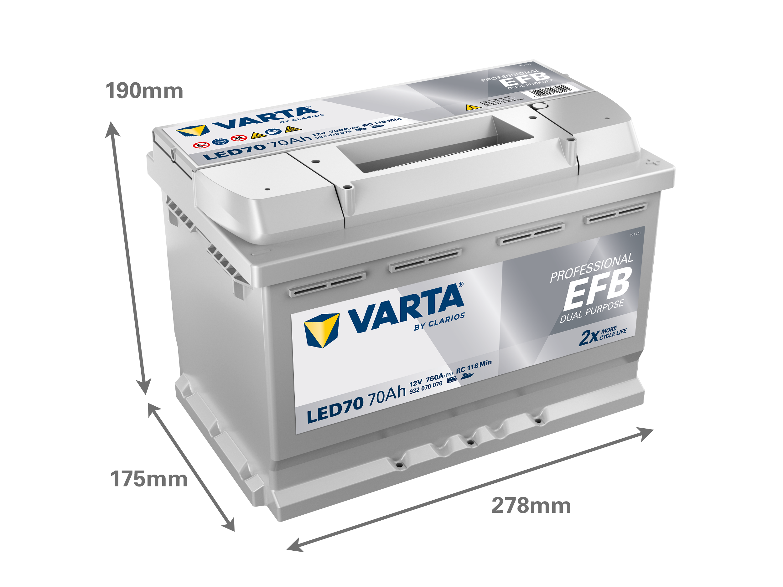 Batterie VARTA Professional Dual Purpose EFB LED 70 12V 70AH 760 AMPS 278x175x190 + Droite
