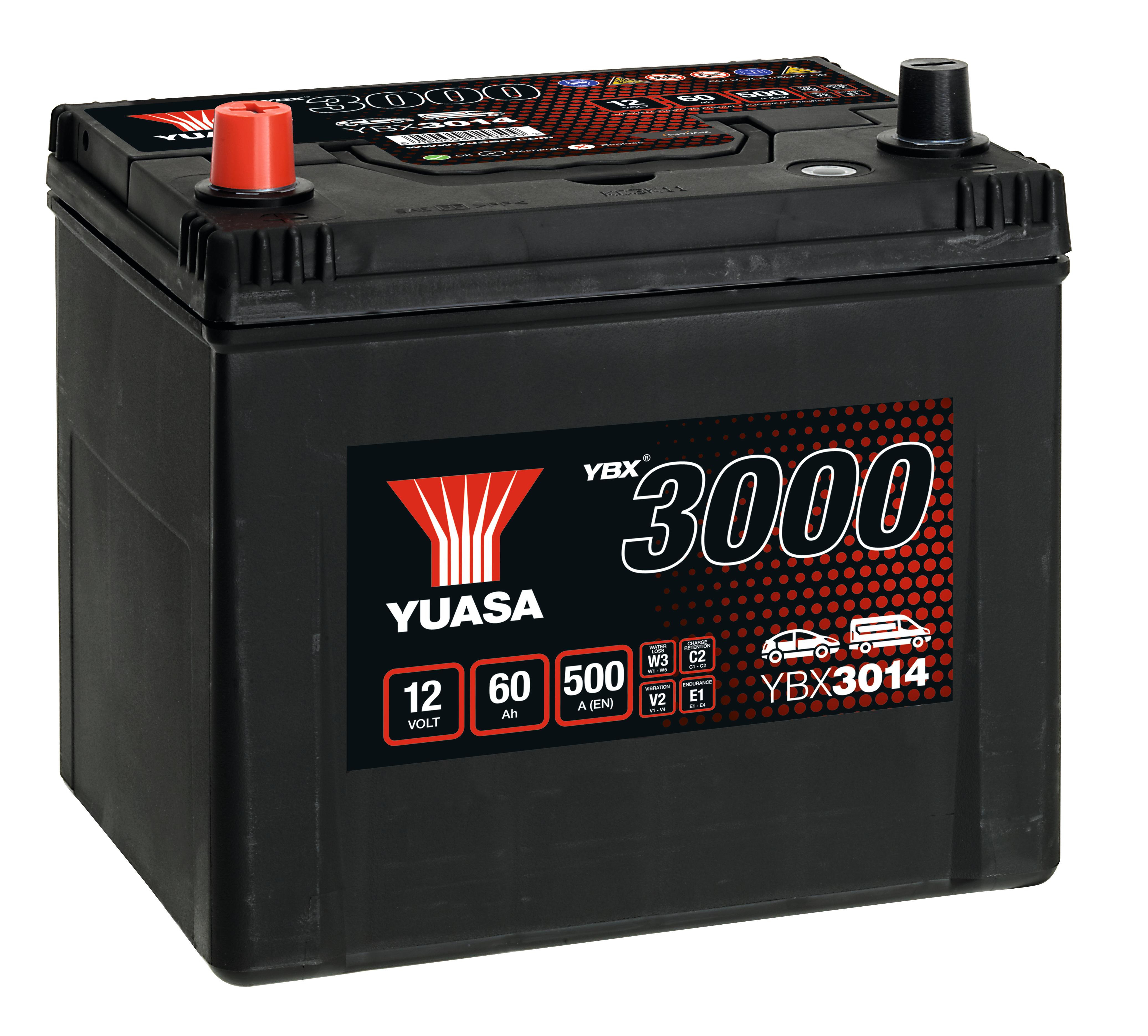 Batterie Yuasa YBX3014 conventionnelles standard 12 V 60 AH 500 AMPS L 231 l 173 H 225