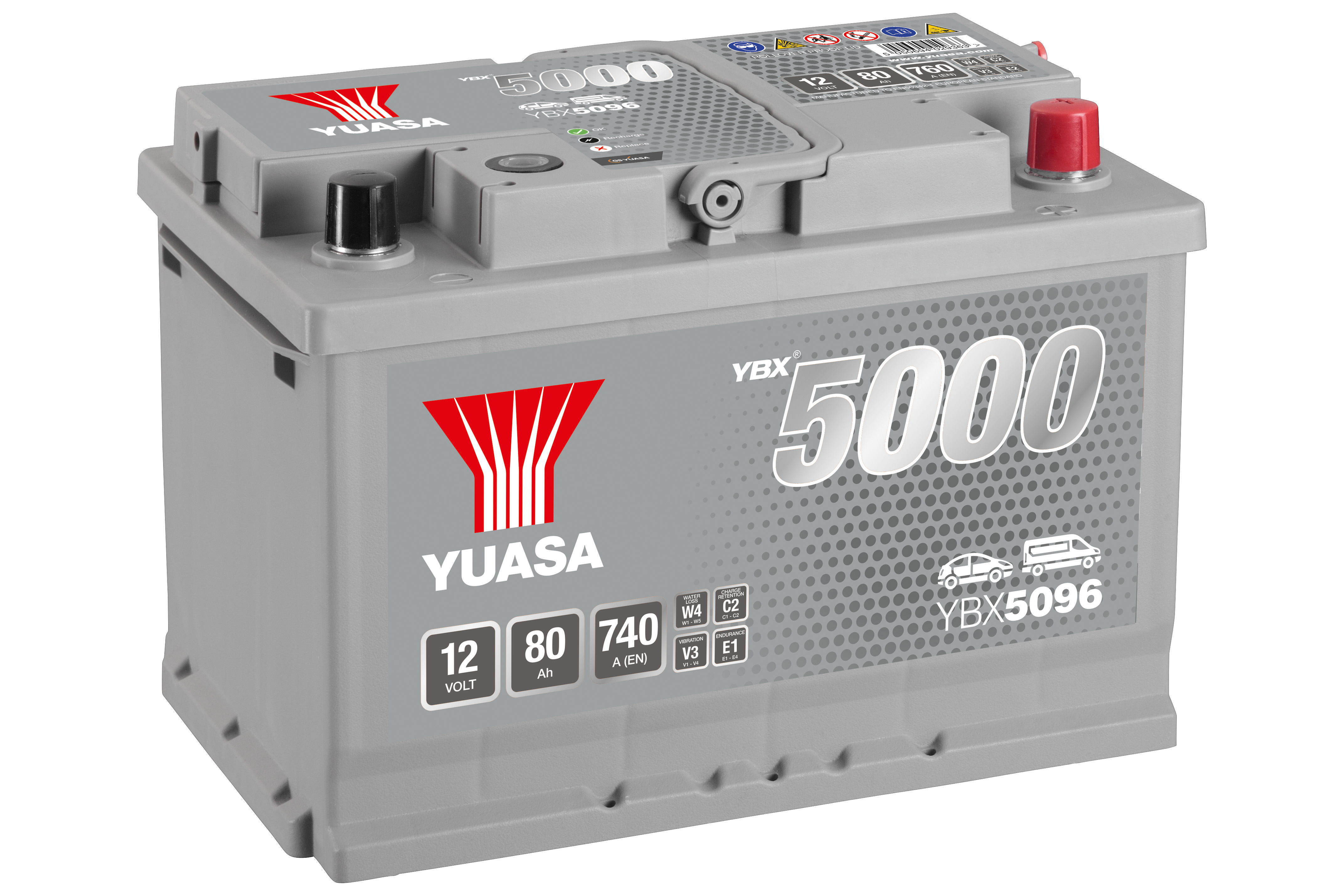 Batterie Yuasa YBX5096 conventionnelles Hautes performances 12 V 80 AH 740 AMPS L 278 l 175 H 190
