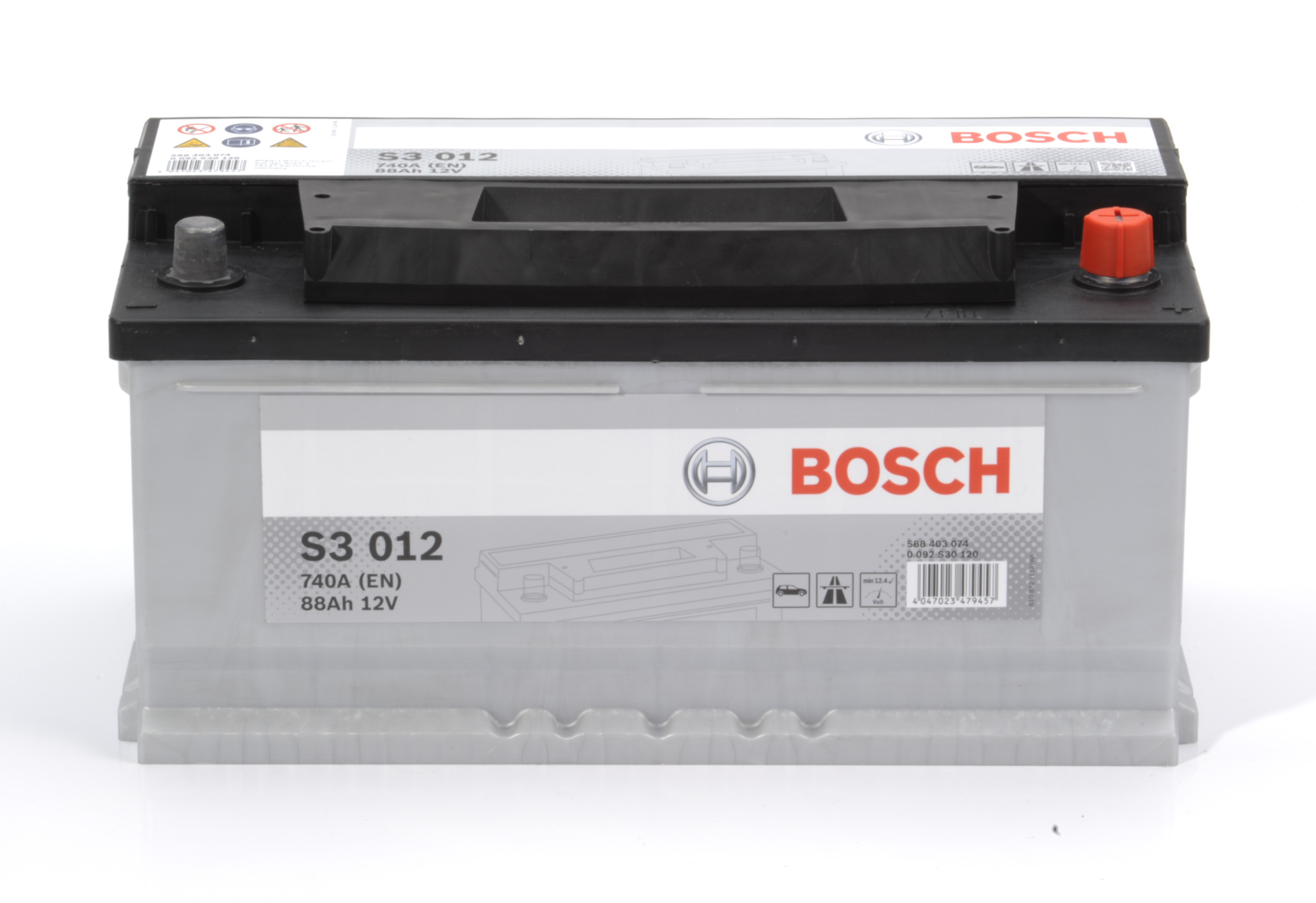 Accueil Batteries Batteries de voiture Batterie de démarrage Auto BOSCH S3012 - 12V 88Ah 740A (EN)
