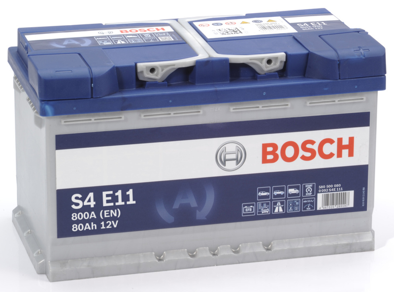 Accueil Batteries Batteries de voiture Batterie de démarrage Auto EFB compatible véhicules Start&Stop BOSCH S4E11 - 12V 80Ah 800A (EN)