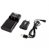 Chargeur rapide Eneloop pour accus classiques et nouvelle génération Eneloop Haut de gamme de chez Eneloop - 4 piles rechargeables Panasonic Eneloop R6 AA 2000mAh incluses - Design looké - Led bleu d'indication de charge - Marque reconnue de haute qualité - Temps de charge : 1H-2H - Recharge de 1 à 4 accus AAA ou AA - Taille : 68 x 112 x 64mm